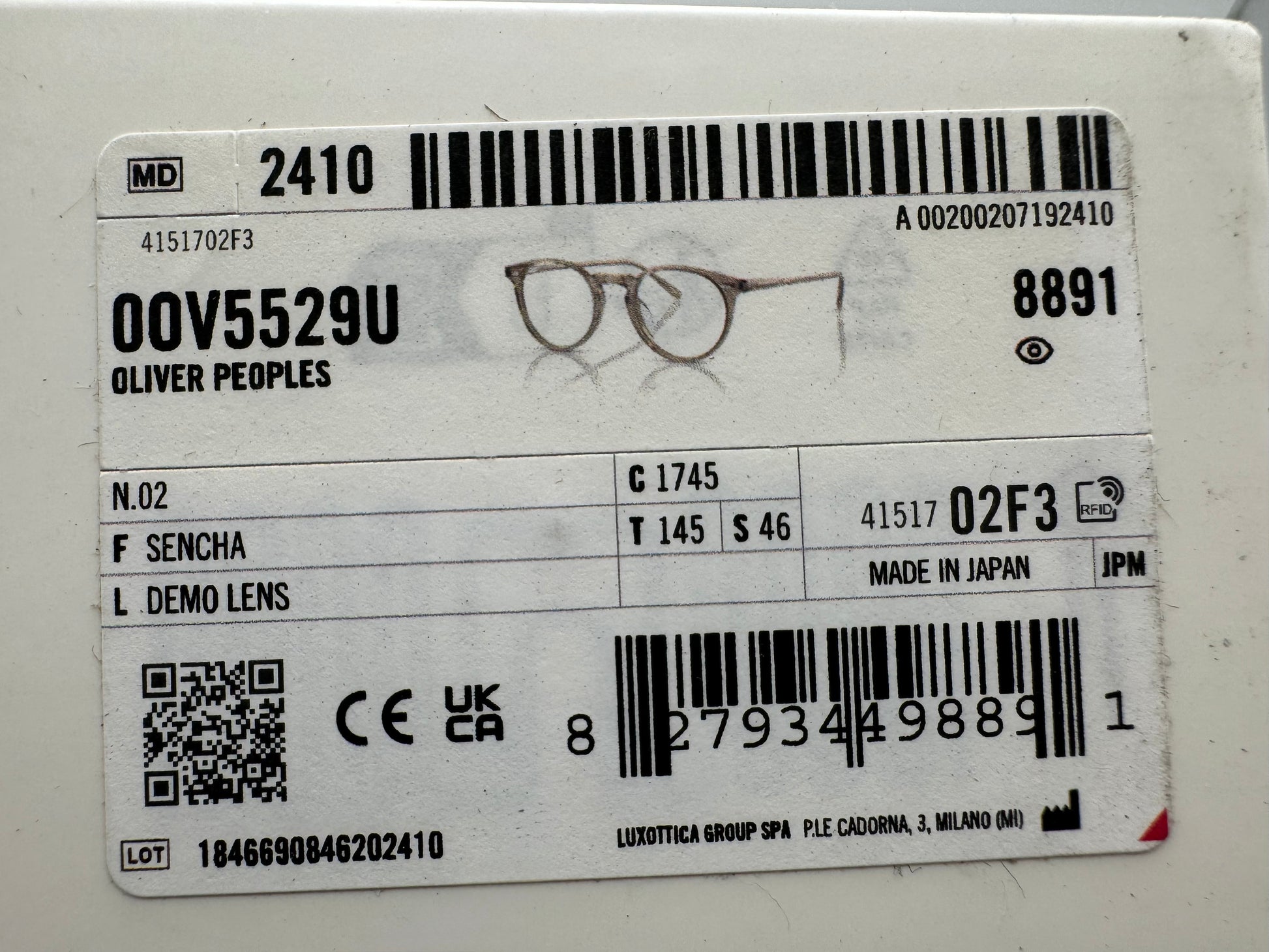 Oliver Peoples 0nly N.02 46mm OV 5529 Sencha / Demo Lens 1745 Japan NEW