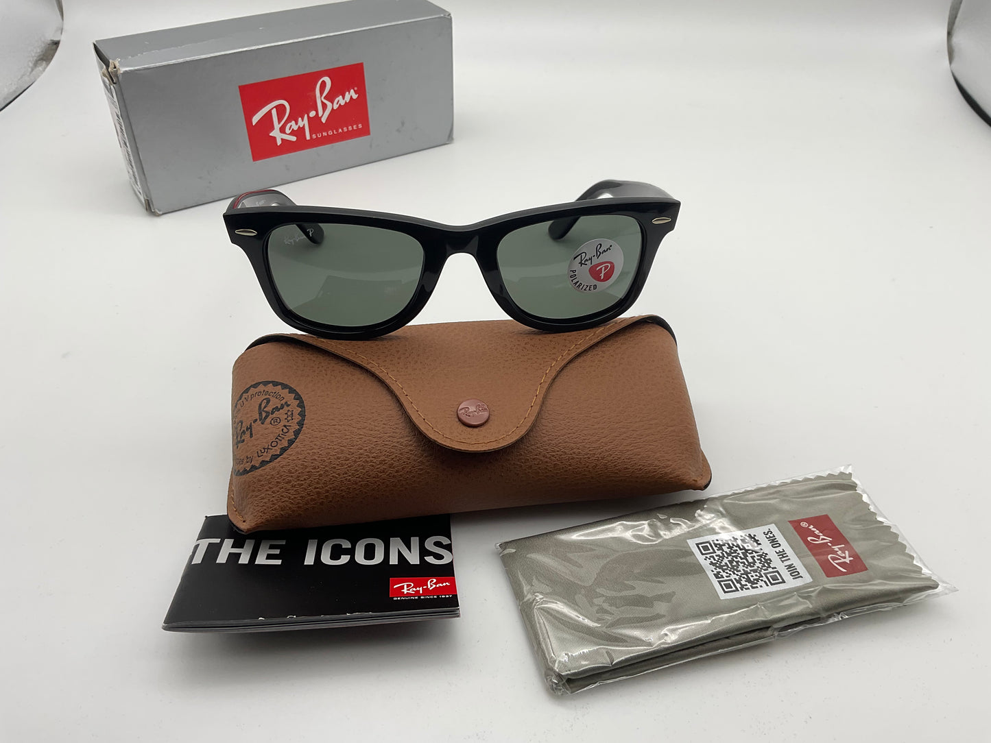 Ray Ban Original Wayfarer Classic 50mm RB 2140 901/58 Black Green Polarized hand made in Italy NEW