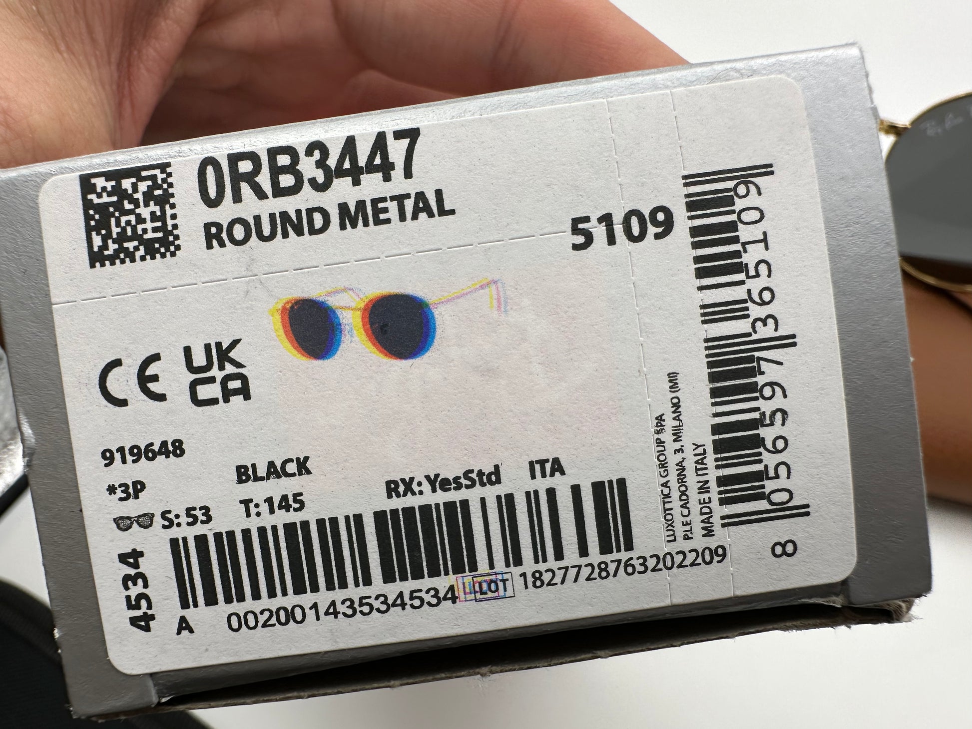 Ray Ban Round Metal Classic 53mm Polarized Black Sunglasses RB3447 919648 Italy NEW