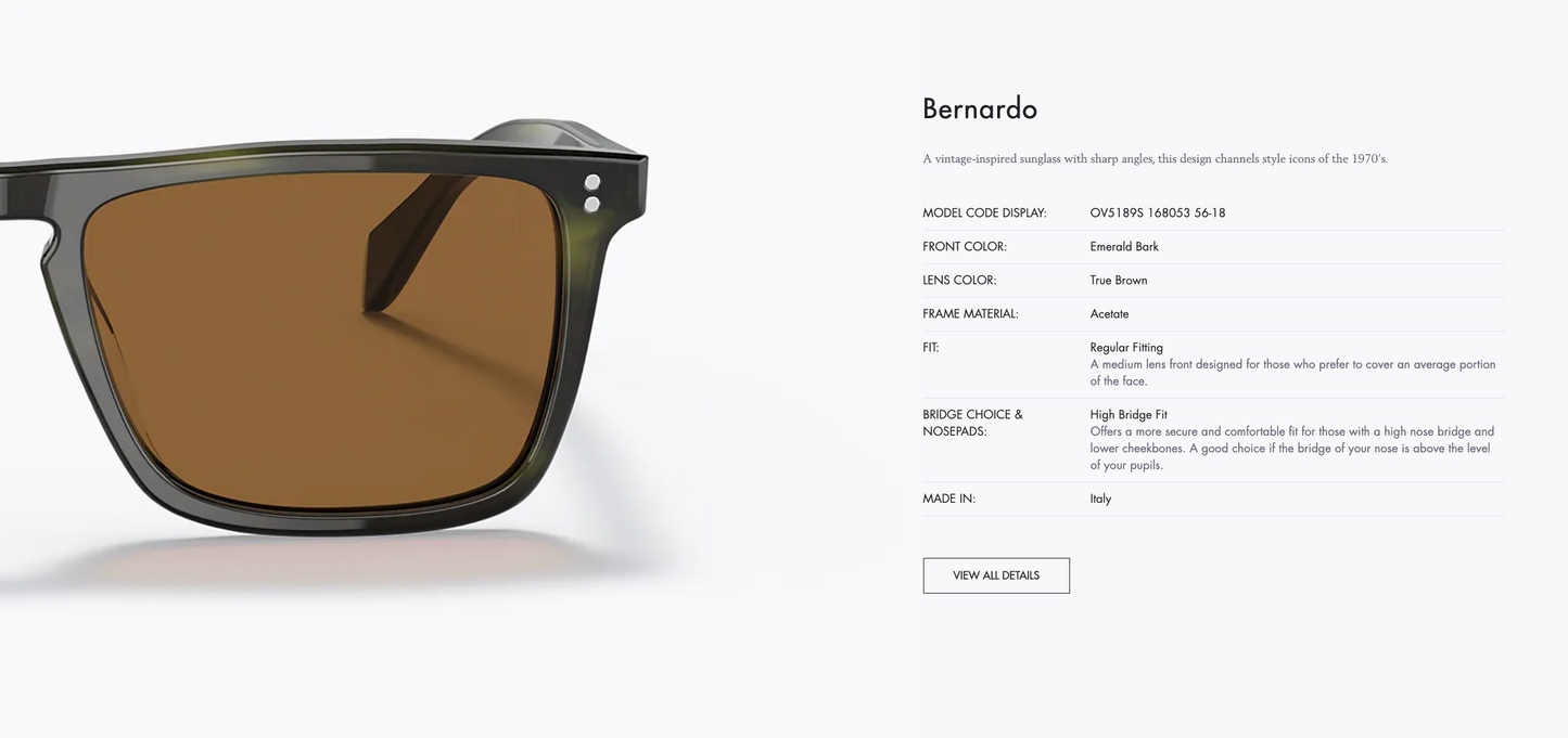 Oliver Peoples Bernardo OV 5189s 56mm 168053 Emerald Bark True Brown Glass Lenses Made In Italy
