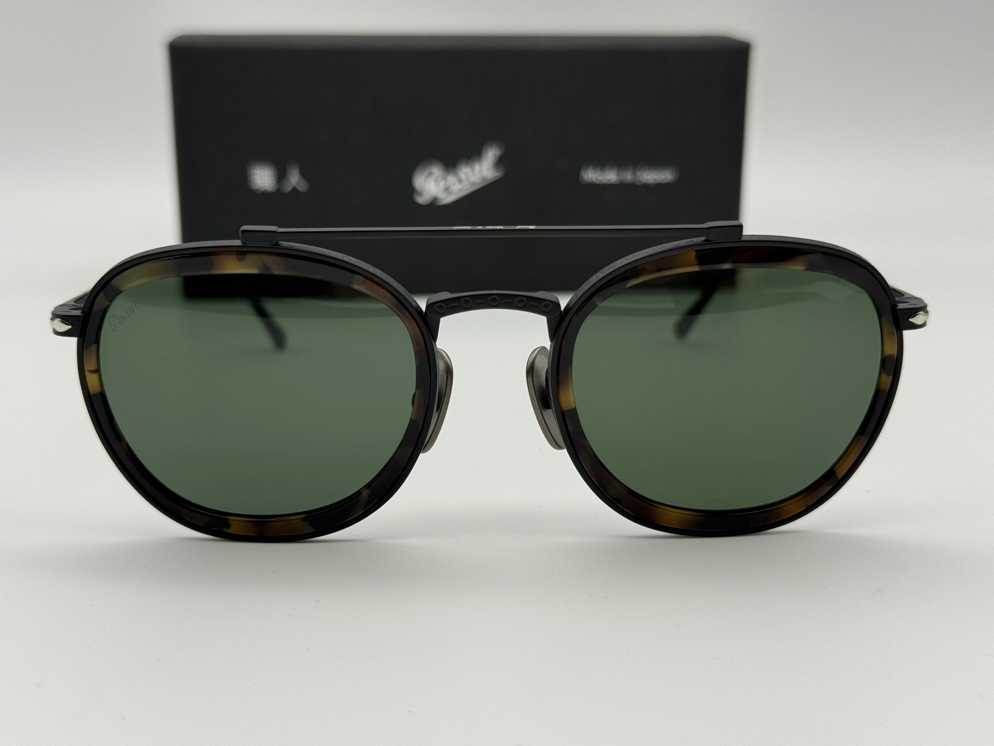 Persol PO 5008 ST 49mm Titanium Black / Dark Tortoise / Green Glass Lens Japan NEW