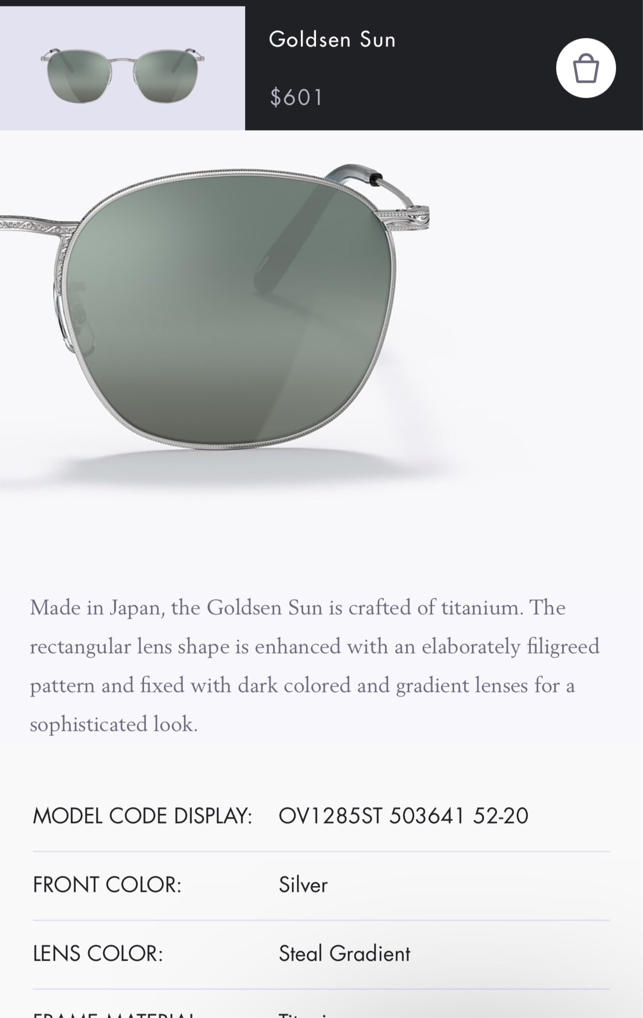 Made in Japan, the Goldsen Sun is crafted of titanium. The rectangular lens shape is enhanced with an elaborately filigreed pattern and fixed with dark colored and gradient lenses for a sophisticated look.