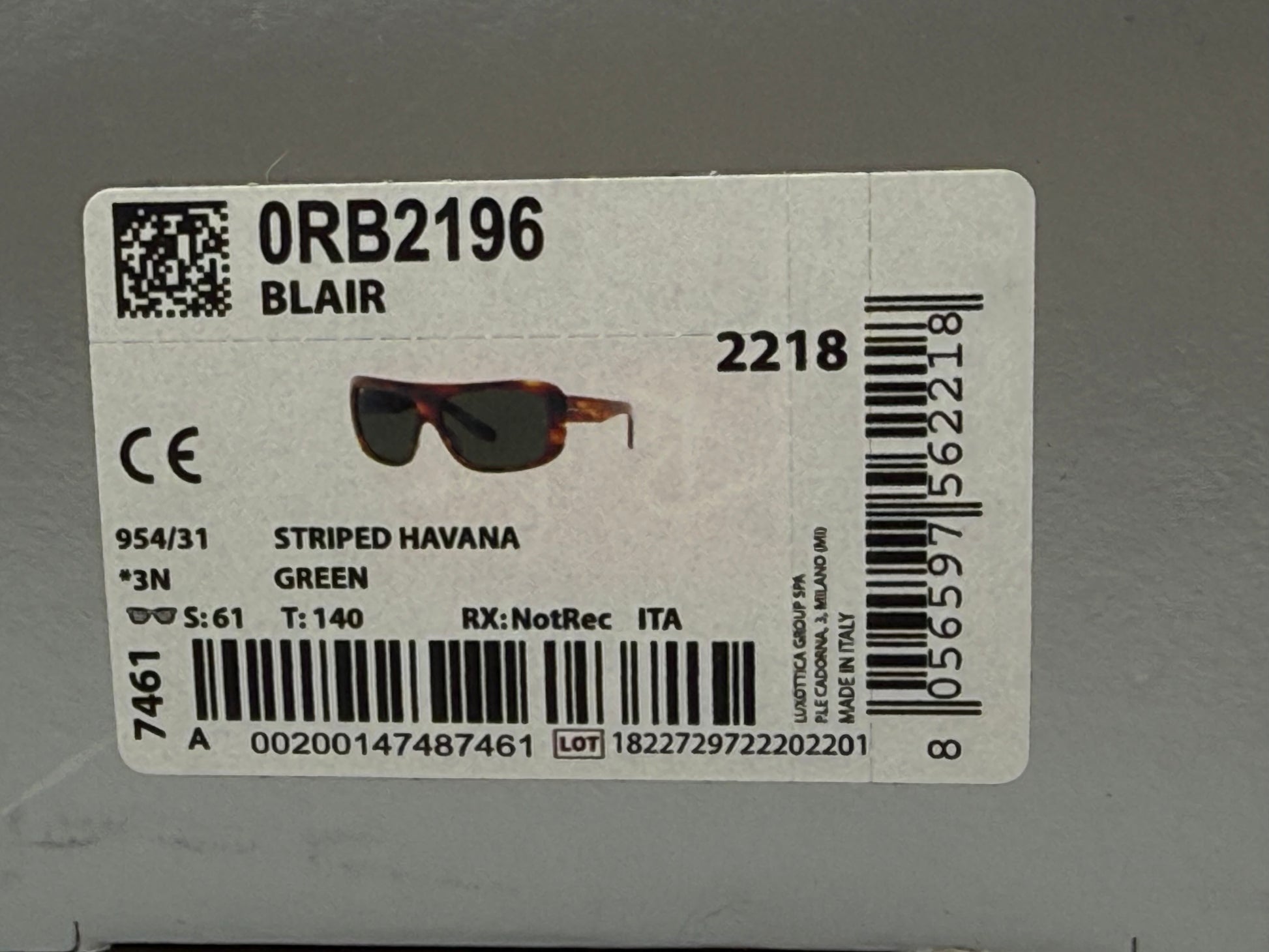 Ray-Ban BLAIR 61mm Stripped Havana 954 / 31 G -15 NEW