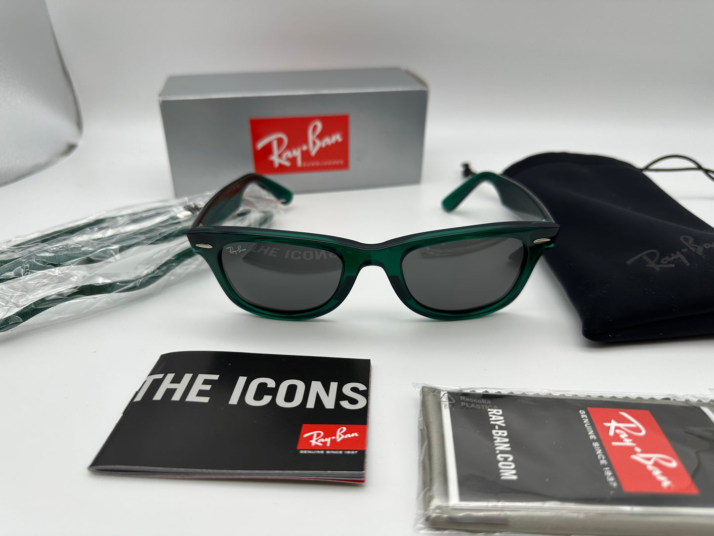 Ray-Ban Wayfarer 50mm RB2140 6615B1 Transparent Green/Dark Grey Sunglasses
