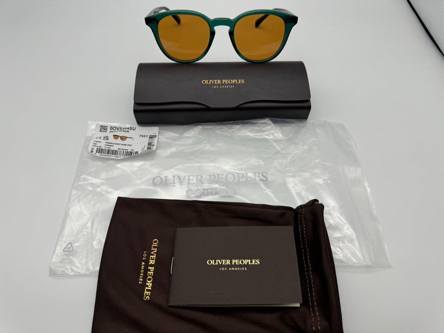 Oliver Peoples Desmon Sun 50mm OV 5454 Translucent Dark Teal / Cognac 176353 Italy NEW