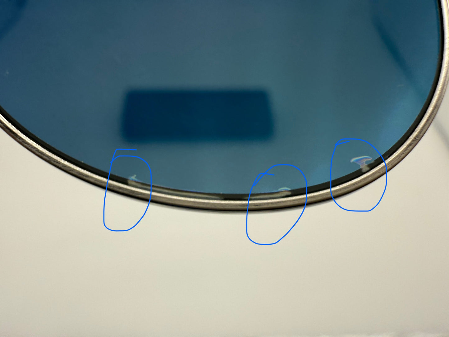 both the frames in the lenses are in almost perfect condition. However, there are some small Air gaps in between the two piece lens that are visible in the photos and I highlighted them. These are not at all visible when looking through the sunglasses.