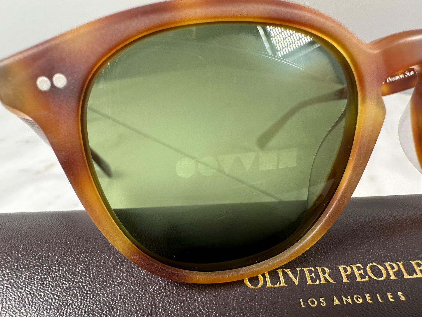 The Desmon Sun is a vintage inspired sunglass with a deeper lens shape and beveled plastic cut. Featuring a distinct keyhole bridge, genuine details and custom acetates, this style is quintessentially Oliver Peoples.