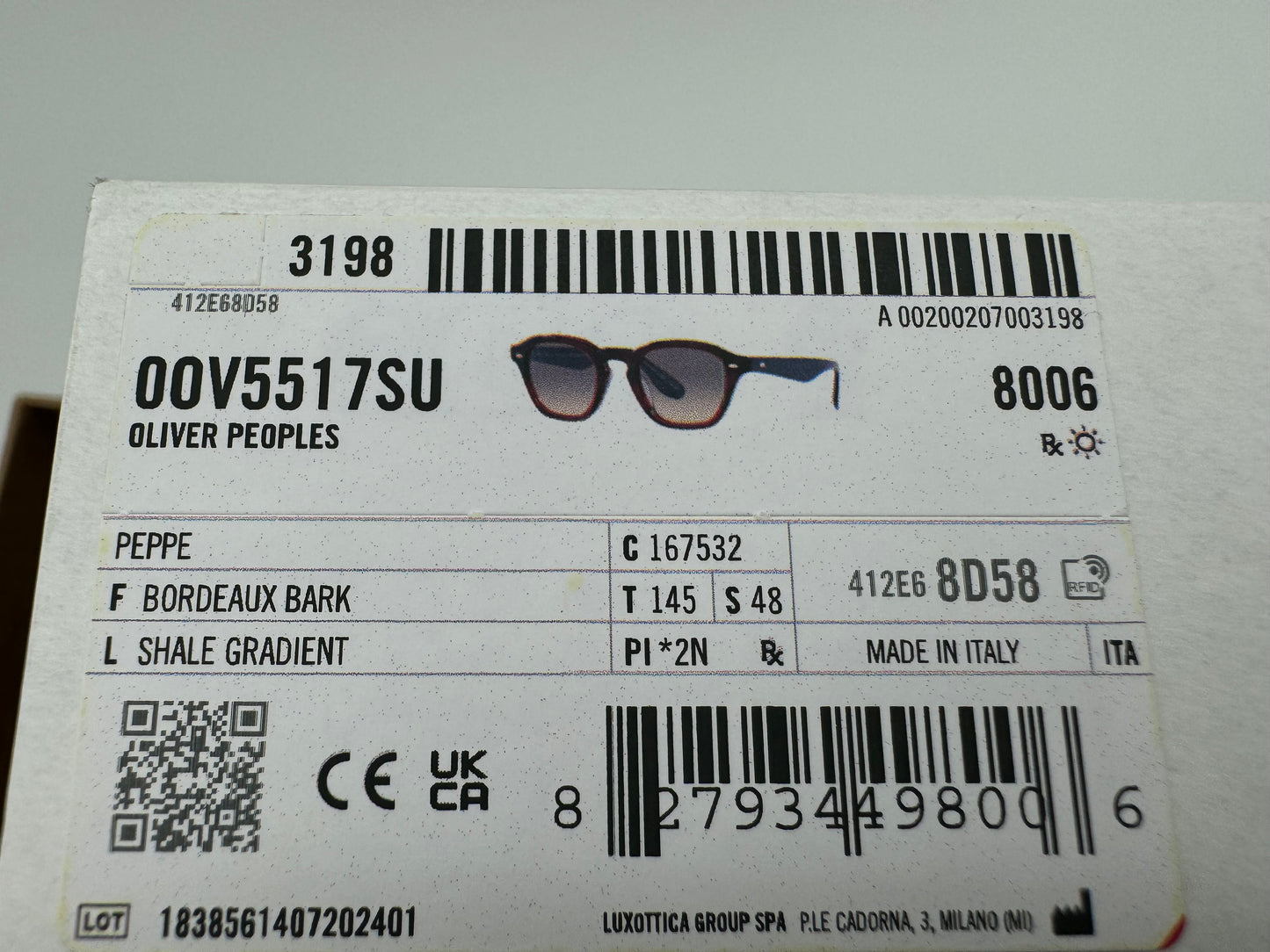 Oliver Peoples Peppe 48mm Bordeaux Bark / Shale Gradient OV 5517 167532 Brunello Cucinelli Italy NEW
