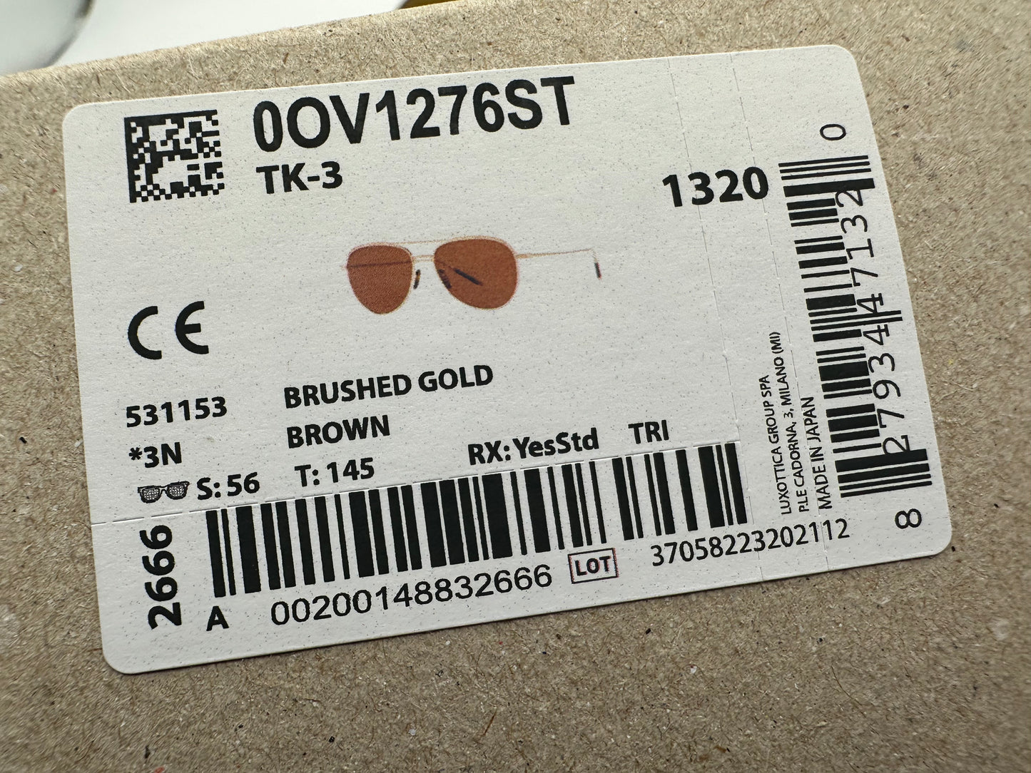 Oliver Peoples TK-3 56mm OV 1276ST 531153 Brushed Gold Brown Made in Japan NEW