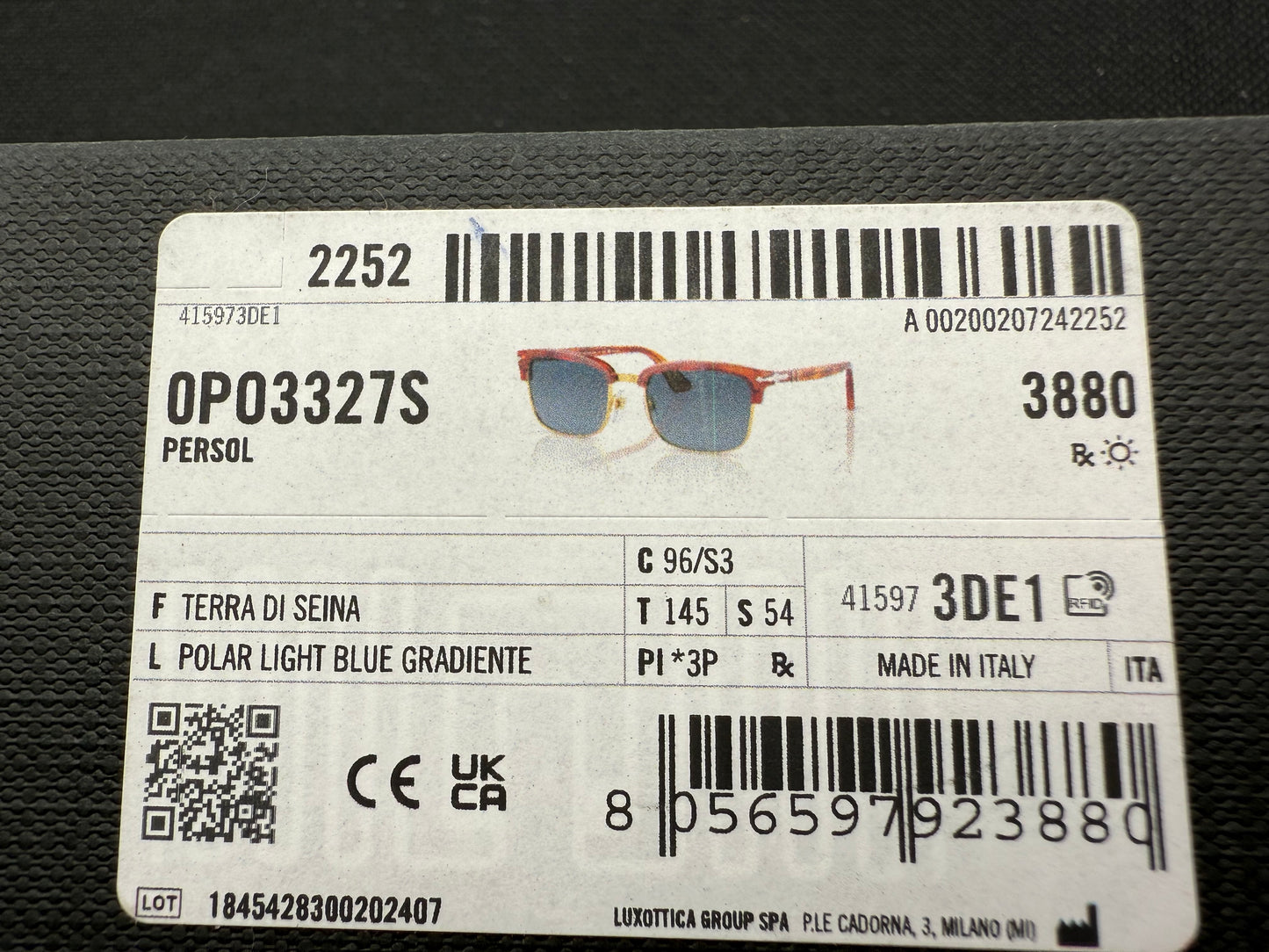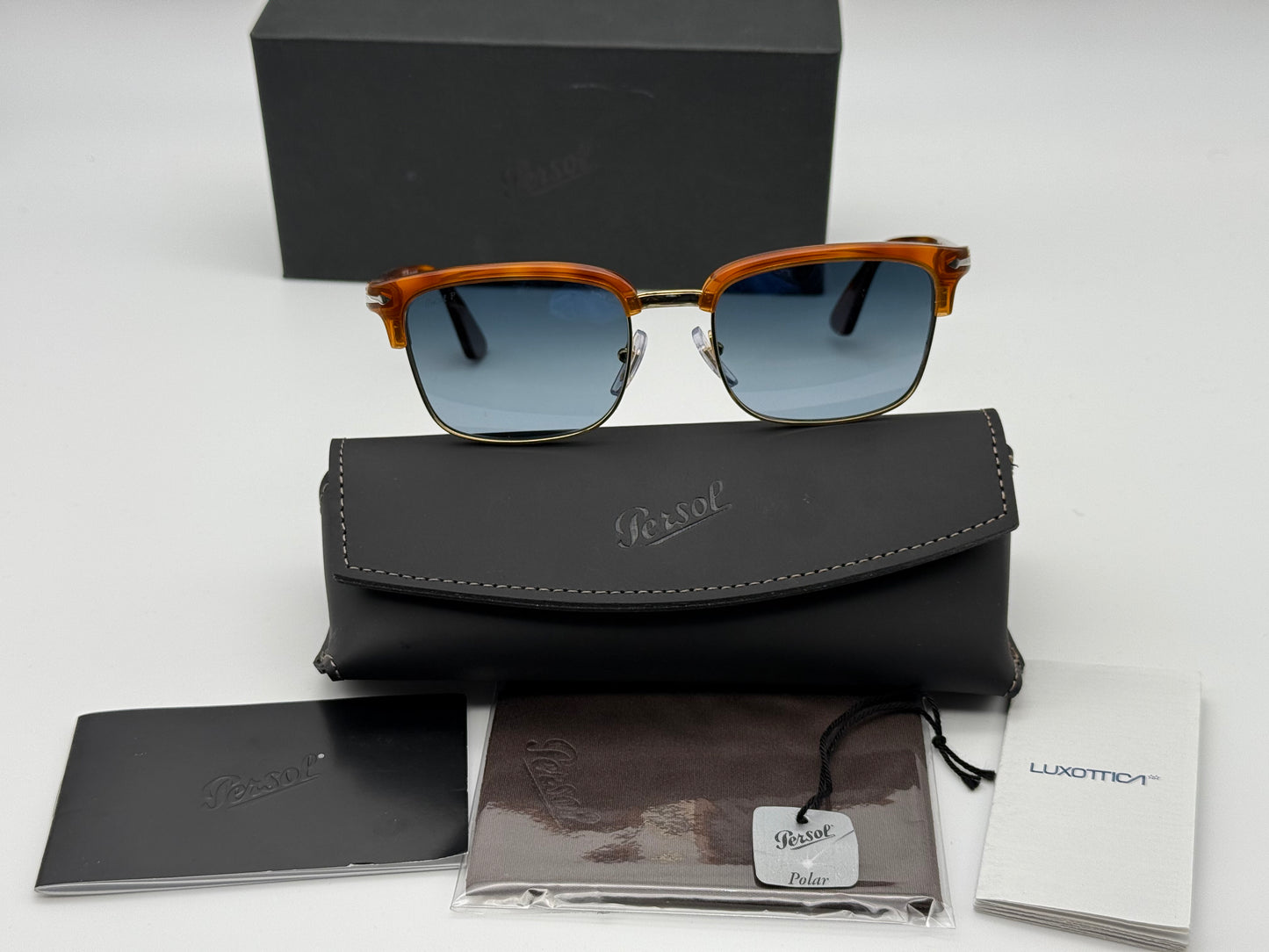Persol PO 3327 54mm Terra DI Seina / Polarized Light Blue Gradient 96 / S3 Browline Italy NEW