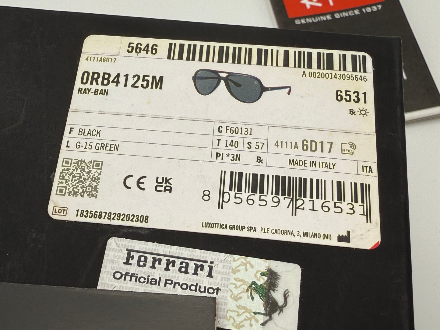 Ray Ban RB 4125M 57mm SCUDERIA Ferrari Collection Black G 15 Green Italy