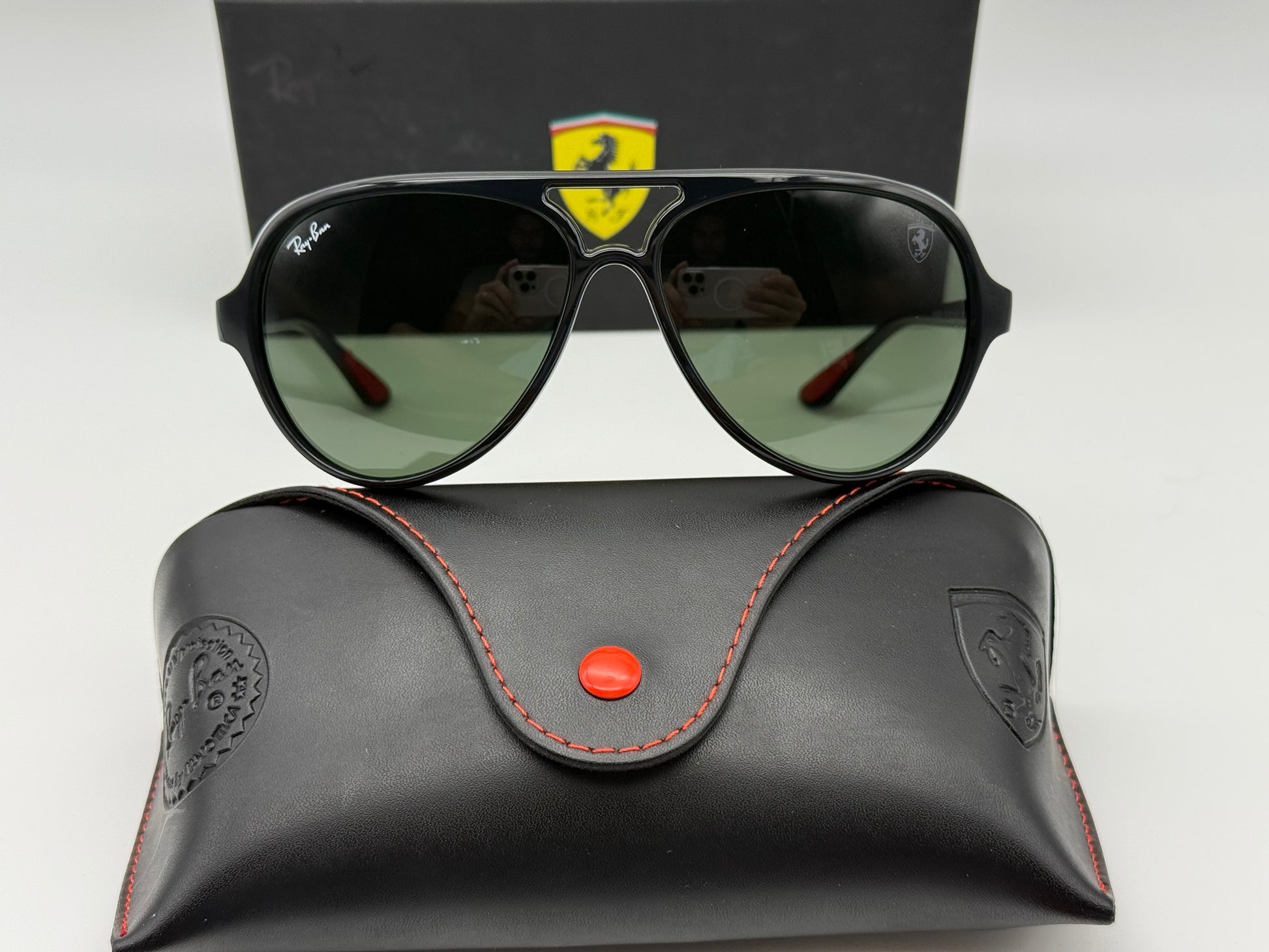 Ray Ban SCUDERIA Ferrari Collection 57mm RB 4125M Black G 15 Green Italy