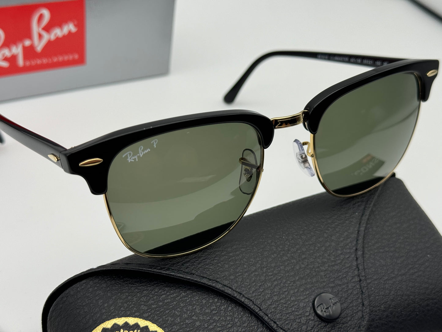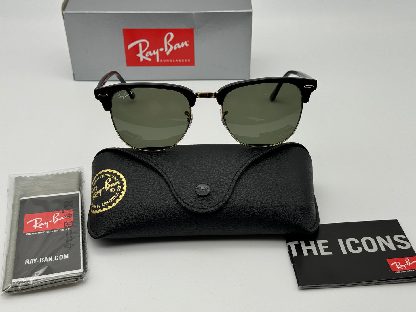 Ray Ban Clubmaster 55mm Large RB 3016 Black / Gold G-15 Polarized 901/58 ITALY NEW
