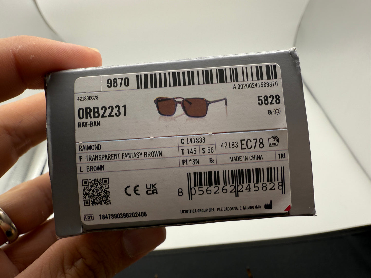 Ray-Ban Raimond 56mm RB 2231 Transparent Fantasy Brown / B 15 141833 NEW