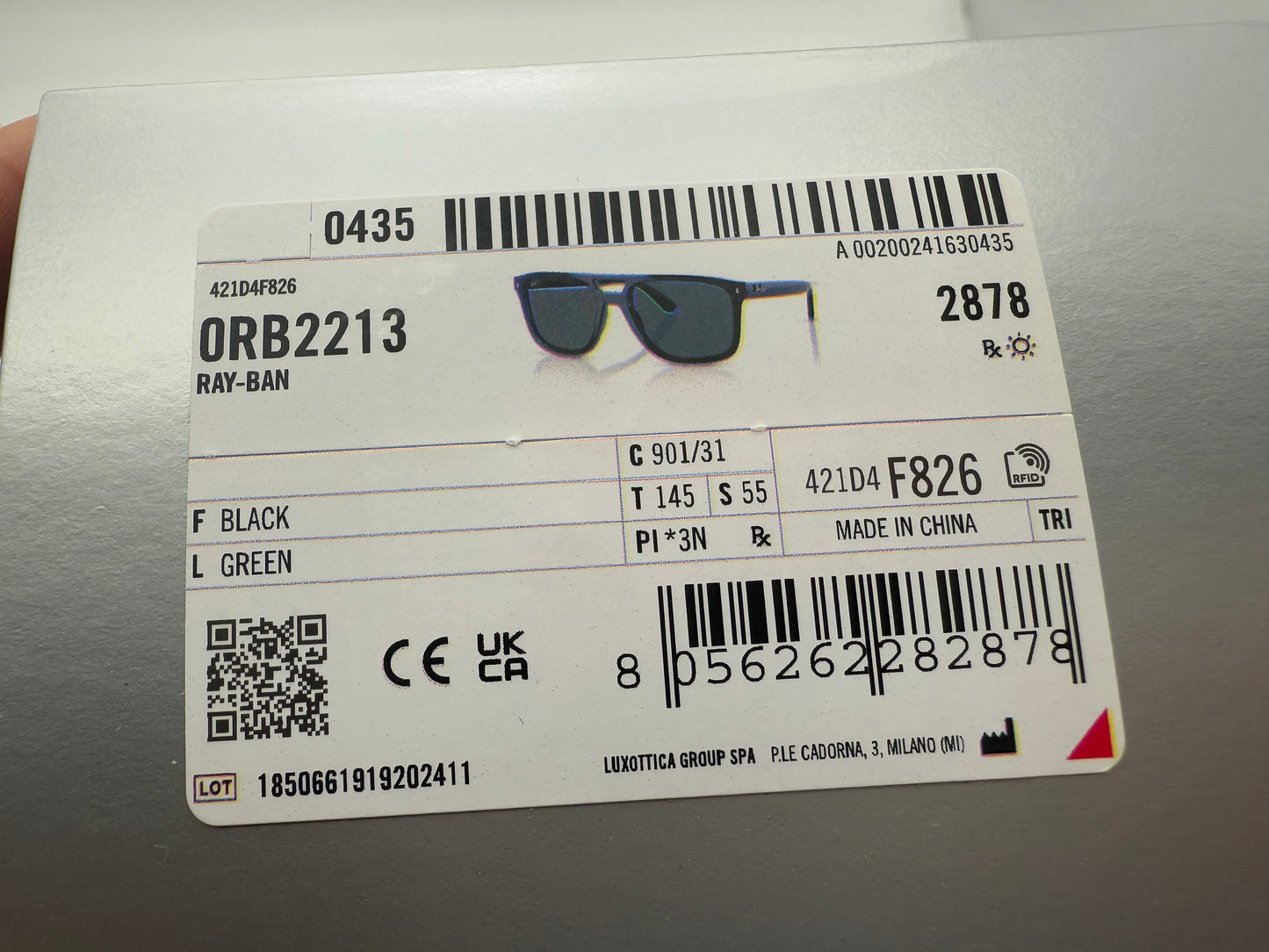 Ray-Ban RB 2213 55mm Black / Green 901 / 31 NEW