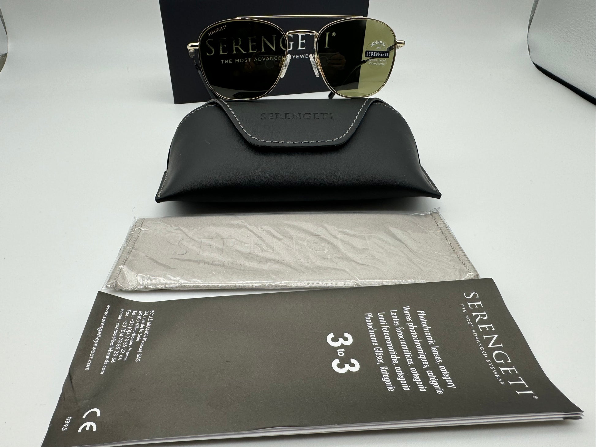 Serengeti Carroll Shiny Light Gold 53mm Photochromic 555nm None Polarized Italy New
